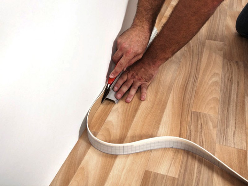 - После того как линолеум будет полностью уложен, проведите финальную подгонку.